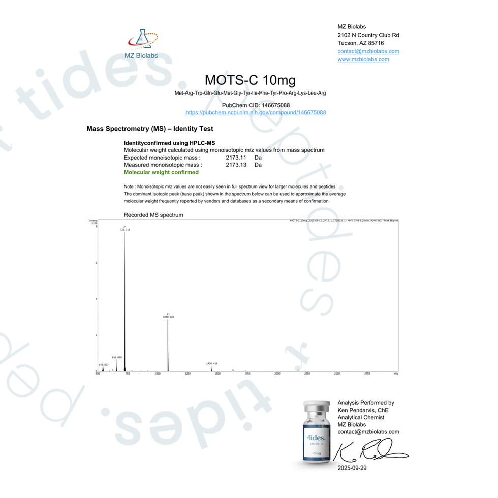 MOTS-C is a 16-amino acid peptide encoded by the mitochondrial genome (MT-RNR1). It belongs to the family of mitochondrial-derived peptides (MDPs), which act as signaling molecules to coordinate cellular energy homeostasis, stress responses, and metabolic adaptation.