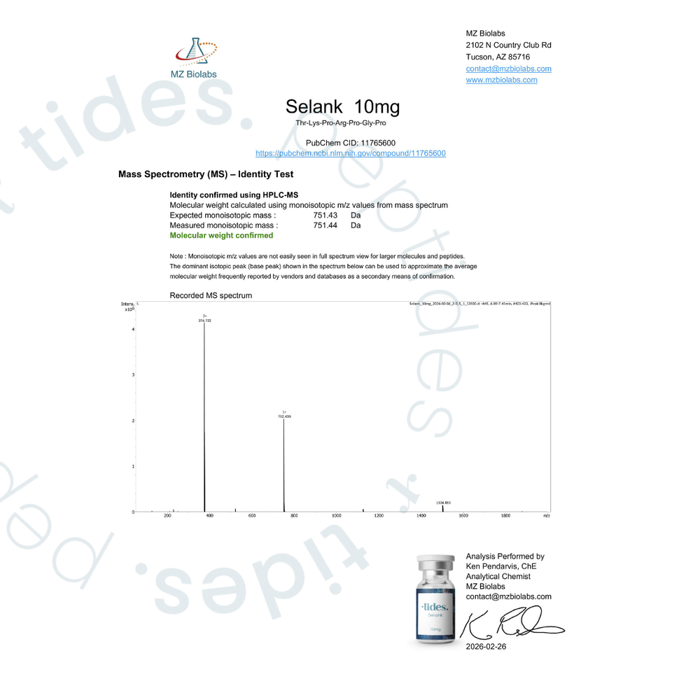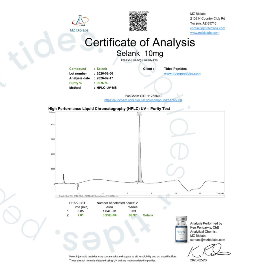 Selank is a synthetic peptide derived from tuftsin, a naturally occurring immune peptide found in the human body. It was developed through neuropeptide research focused on understanding how short-chain peptides influence brain chemistry, emotional regulation, and immune signaling.